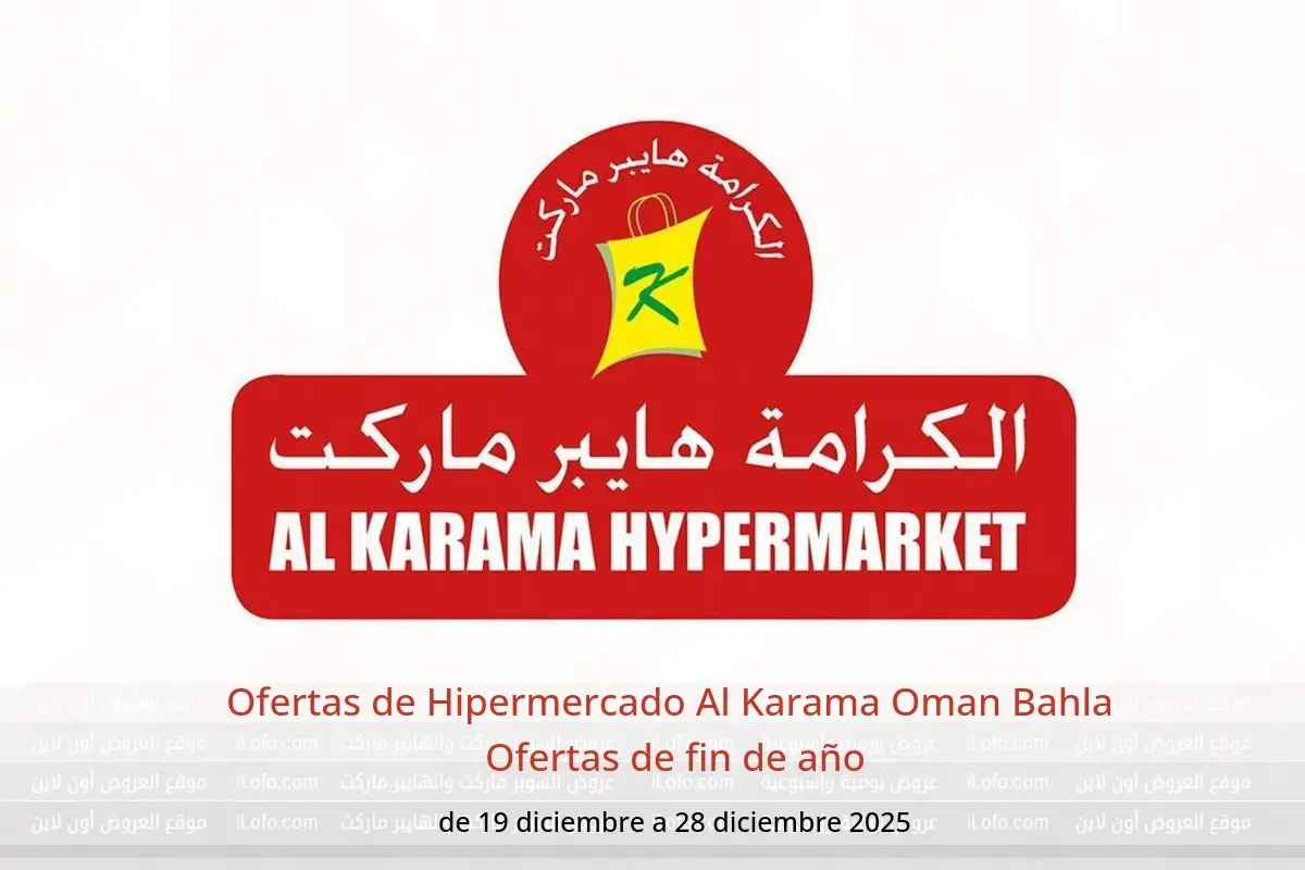 Descubre las últimas ofertas de Hipermercado Al Karama en Oman hoy en sucursales Bahla . Consulta el catálogo Ofertas de fin de año, disponible hasta 28 diciembre 2025.