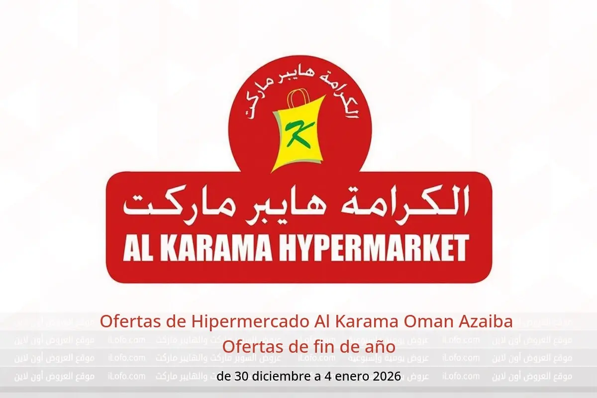 Descubre las últimas ofertas de Hipermercado Al Karama en Oman hoy en sucursales Azaiba . Consulta el catálogo Ofertas de fin de año, disponible hasta 4 enero 2026.