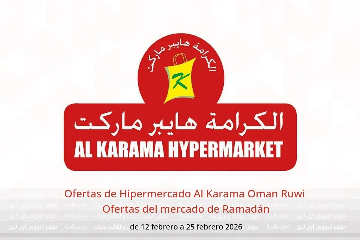 Descubre las últimas ofertas de Hipermercado Al Karama en Oman hoy en sucursales Ruwi . Consulta el catálogo Ofertas del mercado de Ramadán, disponible hasta 25 febrero 2026.