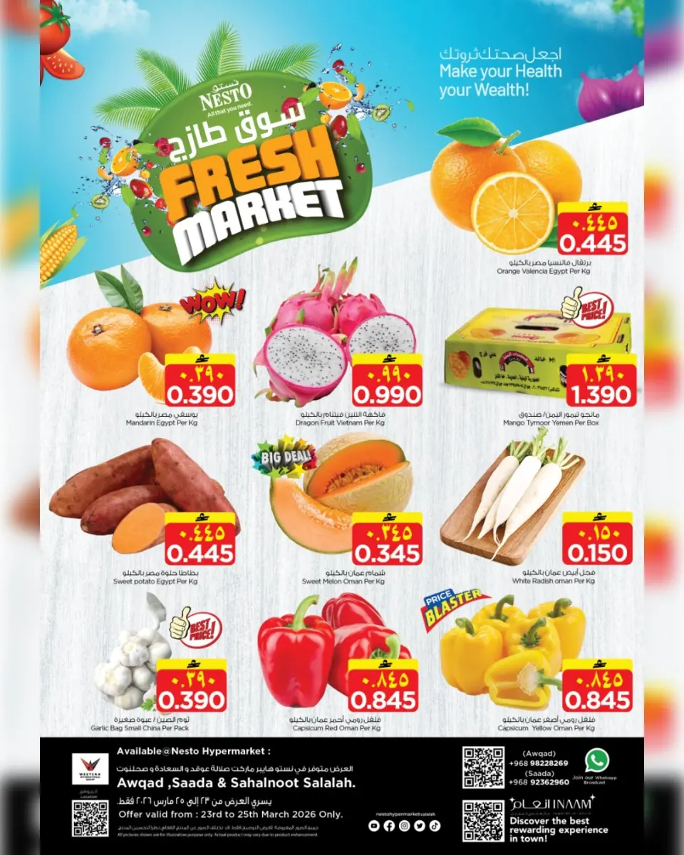 Ofertas de Nesto Oman en las sucursales Salalah Ofertas del Mercado Fresco de 23 a 25 marzo 2026