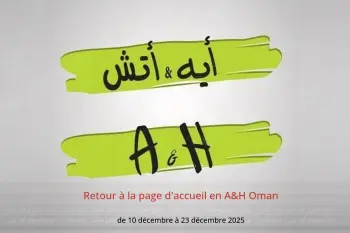 A&H Oman annonce de nouvelles réductions intitulées « Retour à la page d'accueil » disponibles jusqu'au 23 décembre 2025, de nouvelles offres et prix uniquement en Oman.