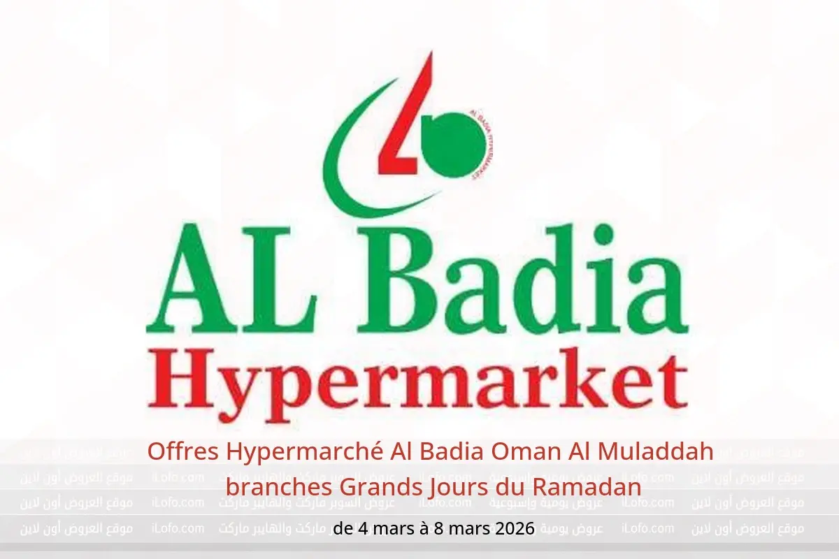 Offres Hypermarché Al Badia Al Muladdah de 4 à 8 mars Grands Jours du Ramadan