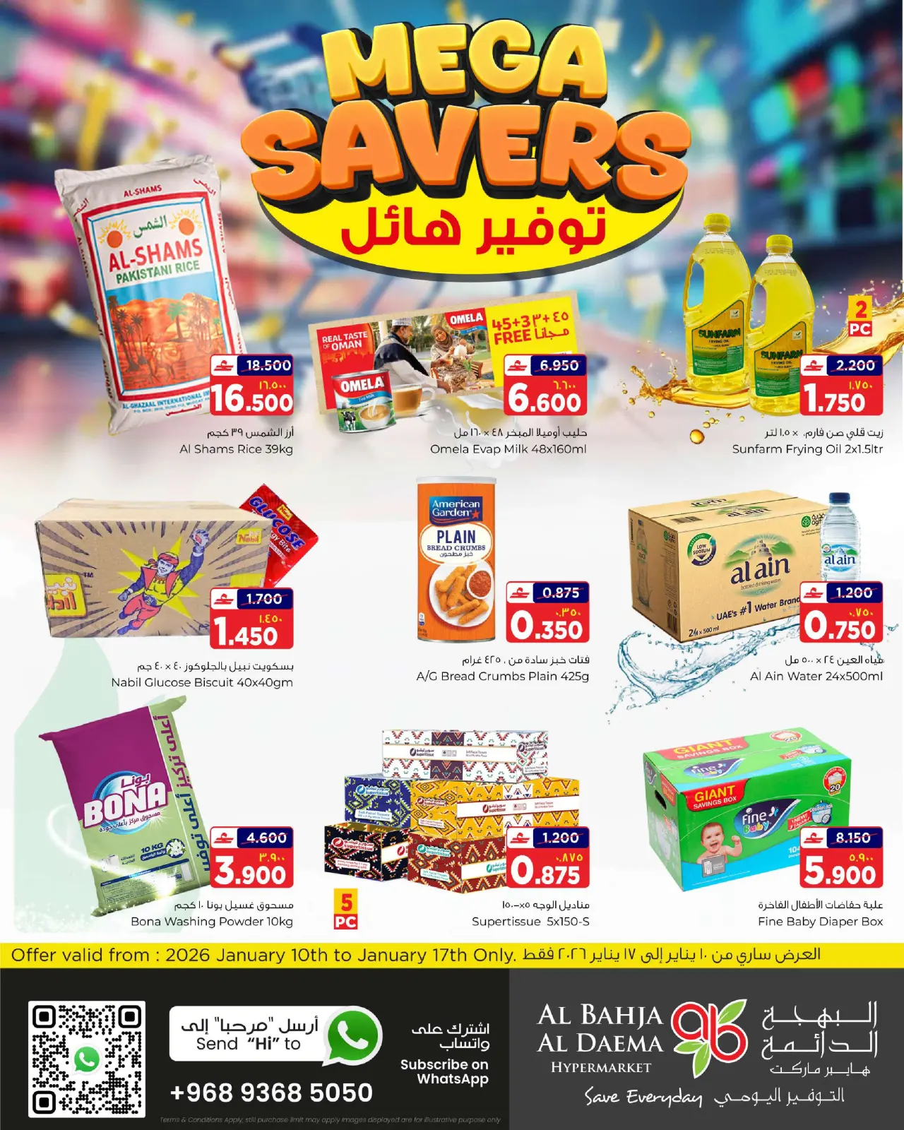 Offres Al Bahja Al Daema Hypermarchés Salalah de 10 à 17 janvier Méga économiseur