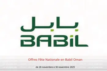 Babil Oman annonce de nouvelles réductions intitulées « Offres Fête Nationale » disponibles jusqu'au 30 novembre 2025, de nouvelles offres et prix uniquement en Oman.