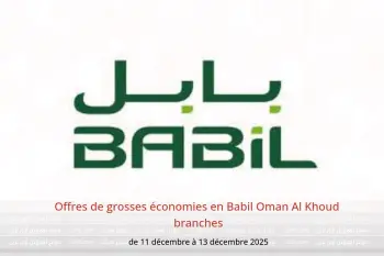 Babil Oman dans les branches Al Khoud annonce de nouvelles réductions intitulées « Offres de grosses économies » disponibles jusqu'au 13 décembre 2025, de nouvelles offres et prix uniquement en Oman.