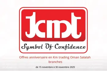 Km trading Oman dans les branches Salalah annonce de nouvelles réductions intitulées « Offres anniversaire » disponibles jusqu'au 30 novembre 2025, de nouvelles offres et prix uniquement en Oman.