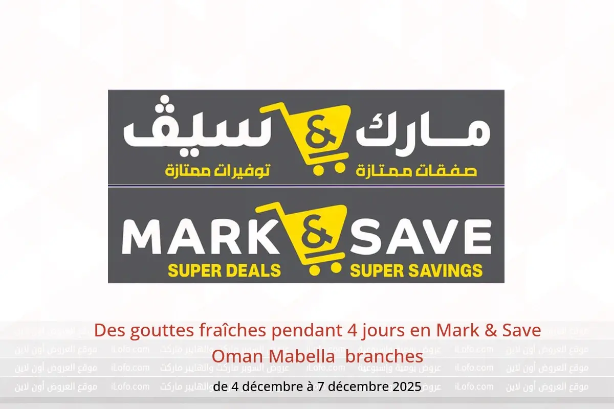 Mark & Save Oman dans les branches Mabella annonce de nouvelles réductions intitulées « Des gouttes fraîches pendant 4 jours » disponibles jusqu'au 7 décembre 2025, de nouvelles offres et prix uniquement en Oman.