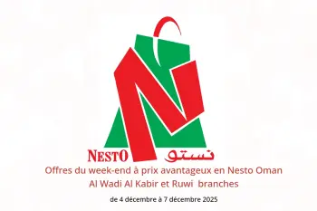 Nesto Oman dans les branches Al Wadi Al Kabir et Ruwi annonce de nouvelles réductions intitulées « Offres du week-end à prix avantageux » disponibles jusqu'au 7 décembre 2025, de nouvelles offres et prix uniquement en Oman.