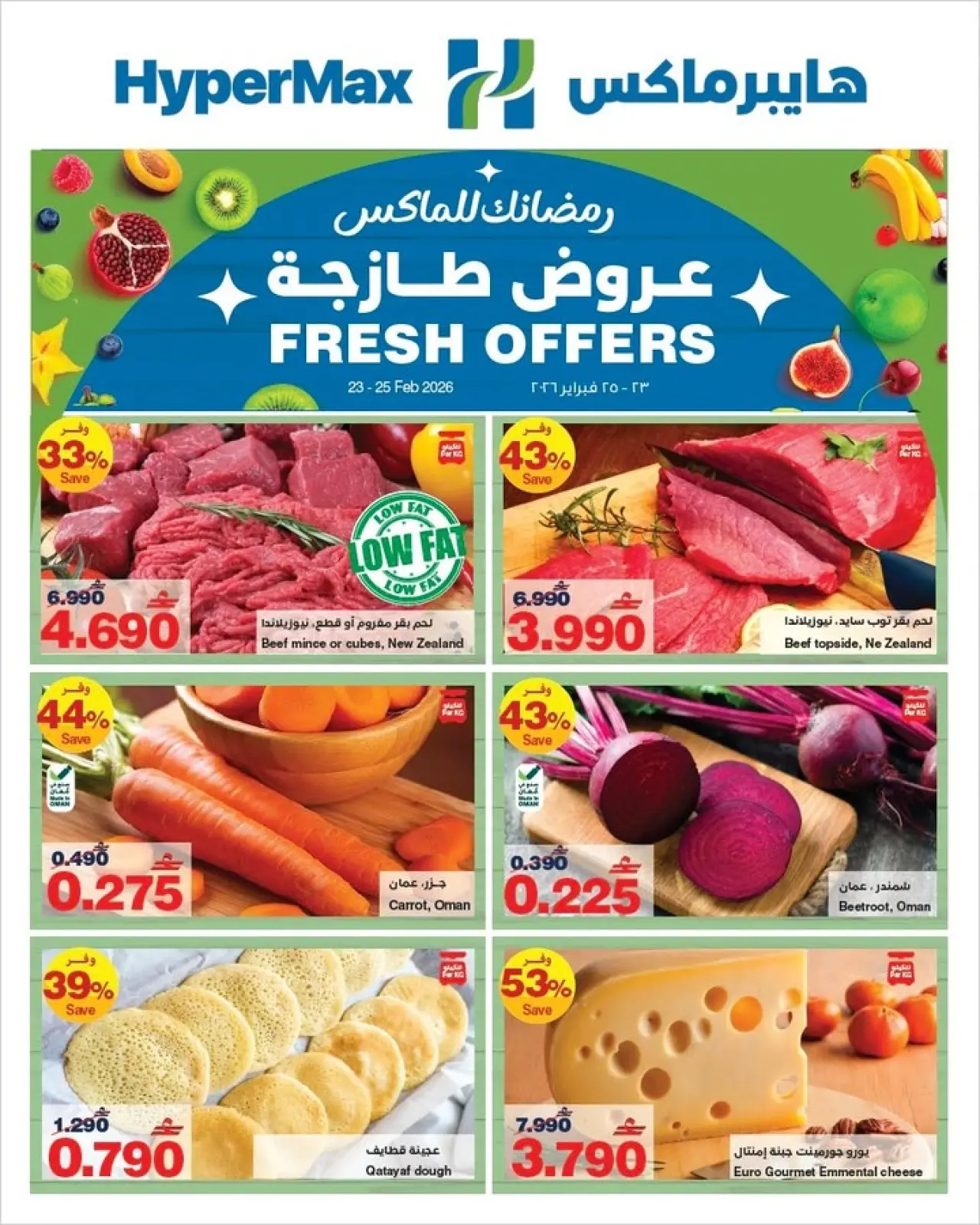 عروض هايبر ماكس عمان من 23 حتى 25 فبراير 2026 عروض طازجة