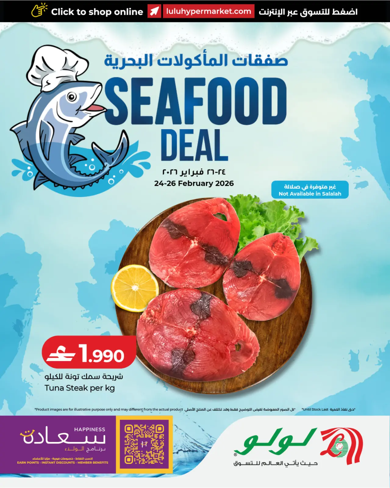 تنويه: صور وأسعار صفقات المأكولات البحرية في لولو عمان المعروضة في هذا الكاتالوج لأغراض توضيحية فقط، وتخضع للتوفر في الفروع خلال فترة العرض.