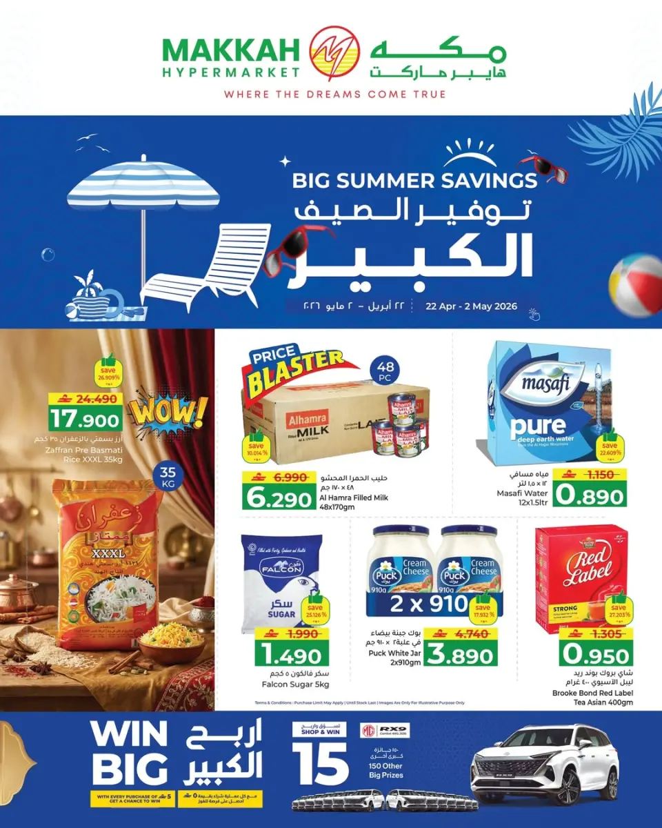 توفير الصيف الكبير في مكة هايبر ماركت عمان خلال الفترة من الأربعاء ٢٢ أبريل ٢٠٢٦ حتى السبت ٢ مايو ٢٠٢٦، واستمتع بأحدث العروض والتخفيضات على مجموعة متنوعة من المنتجات والعروض الحصرية التي تناسب جميع الاحتياجات.