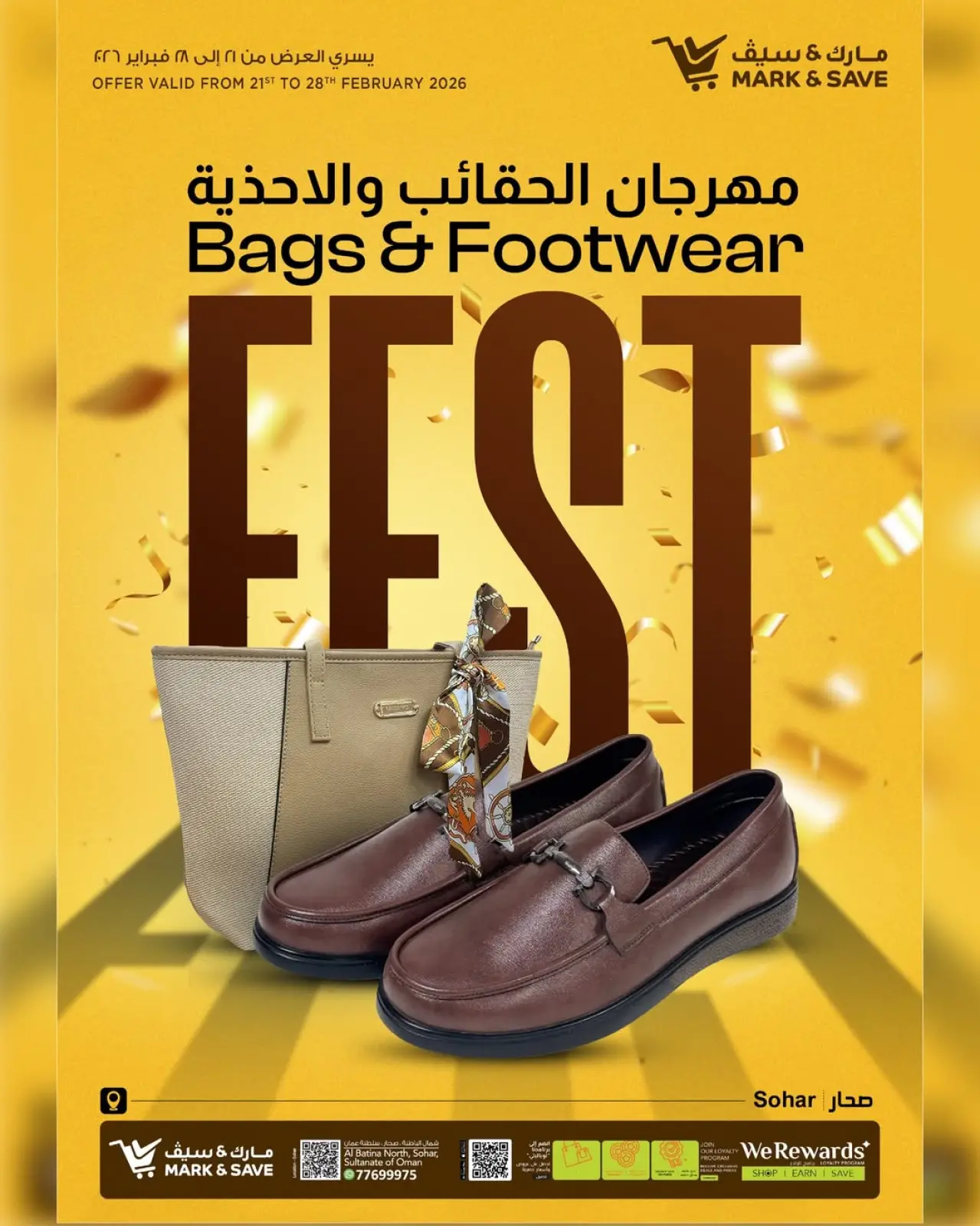 عروض مارك اند سيف صحار من 21 حتى 28 فبراير 2026 عروض مهرجان الحقائب والأحذية